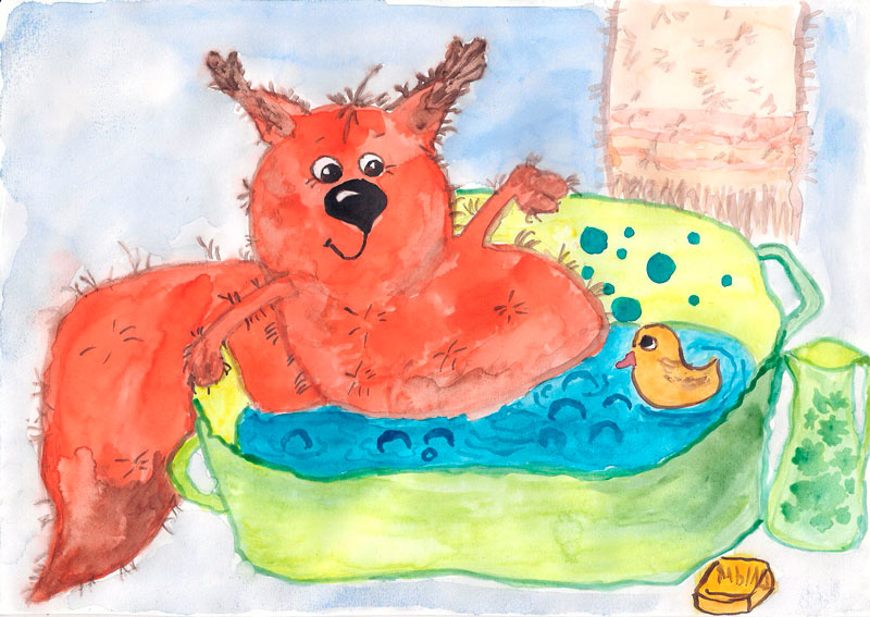 У белки банный день